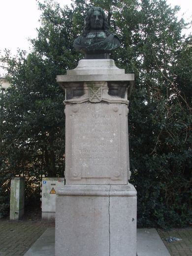 Buste op sokkel van Philip Verheyen (1648-1710), ingehuldigd in 1862 in Verrebroek, van de hand van kunstenaar Frans van Avermaet en architect Louis Serrure.